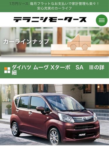 マンスリーレンタカーを探していて、他店と比べても圧倒的に車の状態も価格も非常に良いので1ヶ月マンスリーレンタカーしました。価格はもちろん、補償内容やタントのスライドドアなどのマンスリーレンタカーはかなりお買い得です。他店だと実際、マンスリーは安いけど、車が古いので結局そんなに安くないけど、テラニシモータースさんは新型のNBOXから料金のリーズナブルの車まで幅広く取り扱いしてるので、大変満足しています。マンスリーレンタカー探している方には一度行ってみてください。 枚方市N様「いつも短時間でレンタカーを利用してたけど、使用頻度も多いしスタッフの方にマンスリーレンタカーを紹介してもらった事もあったので、利用していますが好きな時に好きなタイミングで車が使えるし、予約や店頭に行く手間も省けて良い事ばかりです。」 吹田市I様「近場で安いレンタカーを探していました!ホームページに乗っている価格でレンタル出来てサービスも充実しているので、全く不満なく利用しています!定期的にメンテナンスの有無に関しても定期的に連絡をいただき、作業してもらえるので車に不具合が出ることも全然ないです!安心して遠方へも出掛けています。」 門真市S様「近場でレンタカーといえばテラニシモータース!と言えるぐらい安くて助かってます!機会があれば知り合いにも紹介したいと思えるお店です!スタッフの方の対応も良くて非常に親切に接してくれます。」 現時点でご利用いただいているお客様からお褒めのお言葉を多数いただいております!